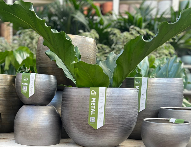 Zinken potten blijven als basis altijd goed. In de loop der jaren is het assortiment uitgebreid tot prachtige spiegels toe, al dan niet bewerkt. Leuke mandjes met prints van margrieten of tulpen, gieters en emmers in allerlei maten, de kleur van het zink gaat met de trend mee. We hebben de grijslook gehad, het grijszwarte zink, de "old" look en zelfs koperkleurig. Zink is een materiaal met een lange levensduur en past in elke tuin of balkon.