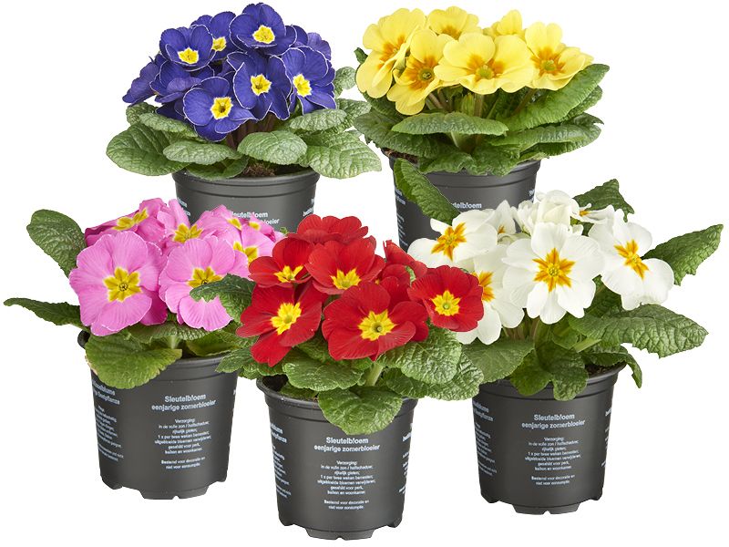 De Latijnse naam van de Sleutelbloem is Primula. Dat komt van Primus, ofwel eerste. Sleutelbloemen zijn immers bijzonder vroege bloeiers. Zolang het niet vriest kun je je nieuwe Primula-aanwinst buiten in potten en bakken planten. Gaat het onverhoopt toch vriezen dan kun je de planten het beste even afdekken of binnen zetten.