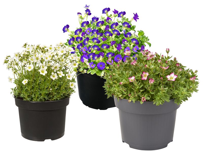 Met Aubrieta, Saxifraga en Iberis geef je je tuin snel een wow-factor. Deze vaste planten groeien vooral in de breedte en daardoor ontstaan er snel volle aaneengesloten bloemplakkaten. Ze vullen gemakkelijk elk verloren richeltje en nemen de ruimte die ze krijgen. Dus: een paar tegels eruit en deze rijke bloeiers erin! Bovenop de aantrekkelijke prijs hebben de planten nog een voordeel, ze zijn winterhard én wintergroen. Planten die erg groot zijn geworden kan je gemakkelijk delen. Zo ‘schilder’ je voordelig je hele tuin vol.