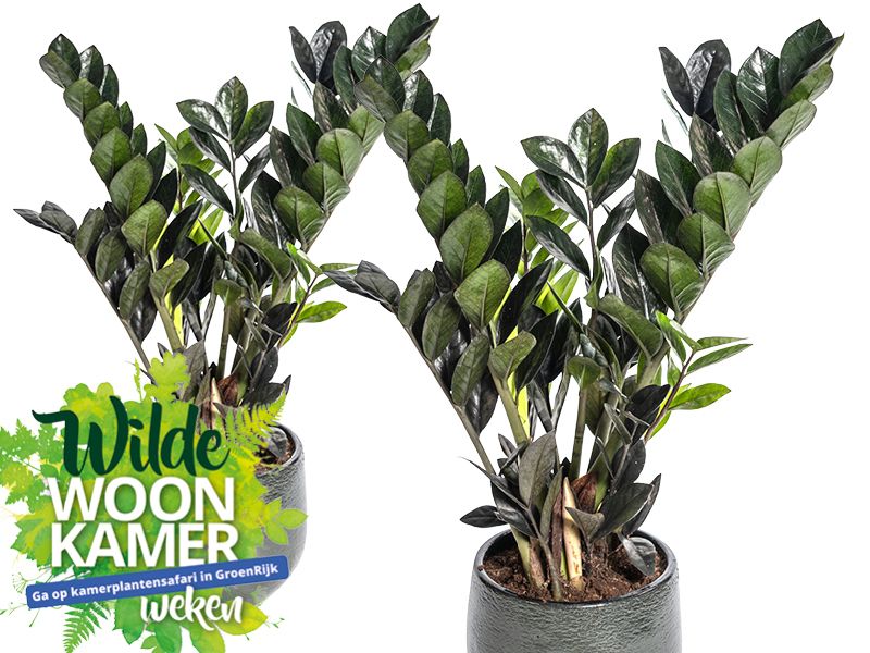 De Zamioculcas, ofwel Zamio, Zammy, Zamia-varen, Duinplant of Emerald-palm komt oorspronkelijk uit het zuidoosten van Afrika. Pas sinds 1996 is hij goed ingeburgerd in Nederland. En het is te verwachten dat zijn populariteit zal blijven stijgen. Door zijn gemakkelijke verzorging én door zijn schitterende looks. Zamioculcas heeft uitzonderlijk stevig blad, met een intense diepgroene kleur. Het lijkt wel of hij van moeder natuur een waxlaag heeft meegekregen, zo mooi glanst het blad.