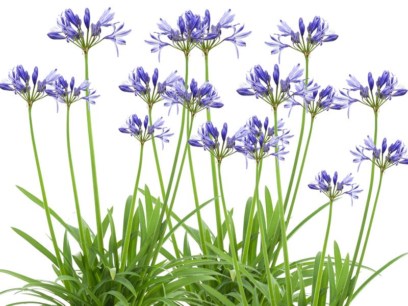 De hoge, langgerekte stelen van de Agapanthus africanus 'Amourette Blue' of Afrikaanse lelie wijzen allemaal reikhalzend omhoog richting de zon. Geef deze ranke beauty een zuidelijk plekje op je terras of balkon en de fel blauwe bloemen stralen de hele zomer.