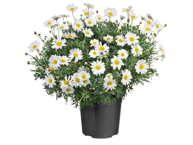 Het is vrij eenvoudig om struikmargrieten twee, soms wel drie seizoenen mooi te houden. GroenRijk potgrond is een prima voedingsbodem. Geef alleen water als de grond droog aanvoelt. Een laagje hydrokorrels onderin de pot kan overtollig water opslaan. En weer afgeven wanneer dat nodig is. Om de plant vol bloem en blad te houden moeten uitgebloeide bloemen en gele bladeren verwijderd worden. Af en toe wat vloeibare plantenvoeding zal de Struikmargriet zeker belonen met een nog rijkere bloei. Eens in de 14 dagen een beetje is al voldoende.